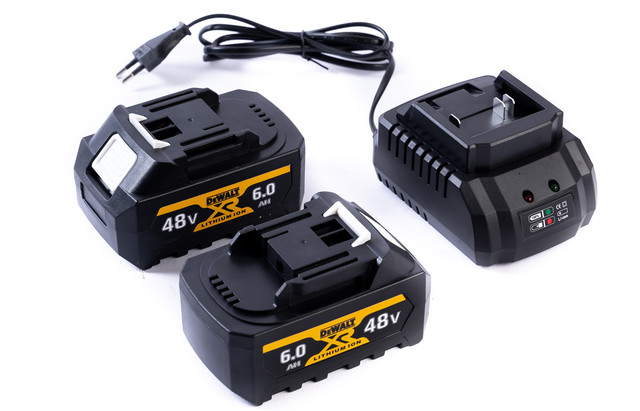 Два літій-іонних акумулятори по 48 В і 6 А/год забезпечують тривалий час автономної роботи без потреби заряджати батареї. Під час роботи в інтенсивному режимі можна швидко змінити один акумулятор на інший, продовжуючи роботу без перерв.